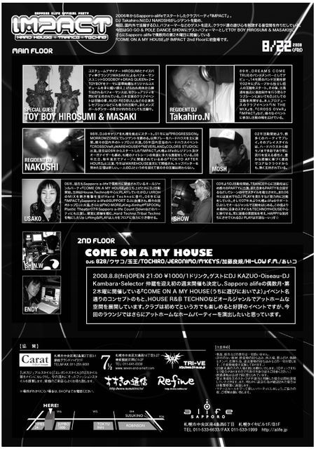 2006年からSapporo-alifeでスタートしたクラブパーティ『IMPACT』