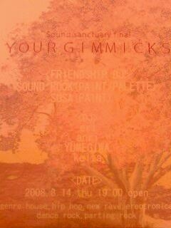 2008年8月29日(金) 【S.o.u.L】 S.o.u.L(Sound on ur Love) 08.08.29(金) @ Club Nova OPEN 22:00 ◆前売◆ 男 1,500円(1Drink) 女 1,500円(2Drink) ◆当日◆ 2,000円 :DJ: A-Killa Psychological Game Yukky etc :MC: 赤とんぼ 工場長 etc :ジャンル: HipHop/Soul/Funk...他 * etc アーティストが気になる方!!! まだ内緒^^ *当日Open Micあり 当日、ジャンルに関係なく歌をやっている人などは、自分の曲のインストCDなどを準備して来ていただけれ