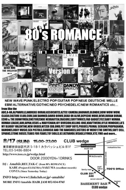 8/17(日)80's ROMANCE in TOKYO Version 8
