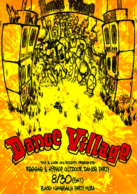 2008年8月30日 TK2 & LOCK ON STUDIO PRESENTS ~DANCE VILLAGE~ REGGAE & HIPHOP OUTDOOR PARTY OPEN/18:00-6:00 @なめさわParty村(野外) 山梨県甲州市塩山小屋敷滑沢2319-1 http://mstyle-pj.com 当日:4000YEN(1D) 前売:3000YEN(1D)-限定300人 駐車場チケット:2000YEN-限定数あり 前売チケット販売方法 1/代引郵送 dance_village@hotmail.co.jpに前売チケット希望とメールください。詳しい内容 を 返信します。 2/前売チケット販売店 ・FREAKS RECORD 042-721-8618 ・HI FASHION RECORDS 042-727-2582 ※当日は雨天
