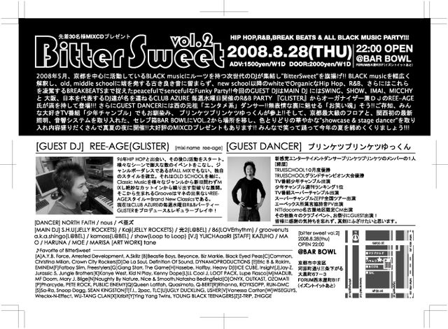 今回特別にミクシーメッセージでも前売りを受け付けます。(前日の夜12:00までに名前と枚数を送って下さい。確認のメッセージを送ります)この機会をお見逃し無く!