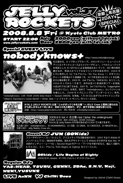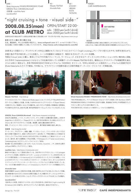 2008/8/9 sat. PM11:00〜AM5:00