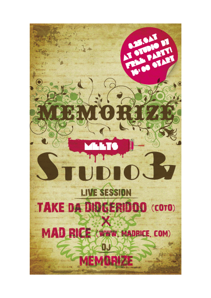 LIVE SESSION に、MAD RICE画伯の PAINTと、たいち利枝の舞踏がディジュとどう絡むのか!お楽しみにね☆
