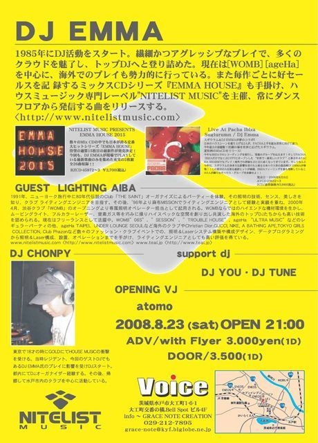 さらにLIGHTINGにはAIBA(NITELIST MUSIC)を迎え、EMMA自身の冠パーティー「EMMA HOUSE」として開催します!!!