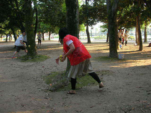 こんばんは。OOCです! 毎日暑い日が続きますね!!本当に暑い…皆さんは何をして遊んでますか? 今日はこんなうだるような暑い日にとっておきの遊びを紹介します!! その名も…『水玉合戦』!! どんな遊びかと言うと……水玉(水を含ませたスポンジボール)を使った雪合戦のような遊びです!!(詳しくは去年の水玉合戦のトピックス・イベントを参照!!) 是非今年の夏は『水玉合戦』で涼しく気持ちよくアツく遊びましょう!! もちろんカッパ兼ゼッケンも用意します!!皆さんお誘い合わせの上ぜひ参加くださーい!! では、詳細は