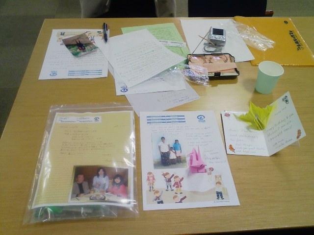 場所:きらめきプラザ2F 研修室(1) http://www.kirameki-plz.com/ 日時:8月3日(日) 13:00~16:00頃 参加費:300円(1家族) 最後にチャイルドに手紙を出したのはいつですか?。 手紙書き会では一人ではなかなか書けないないけれど みんなで取り組んでみると案外書けたり、ヒントを貰えたりします。 前回の模様はプラン・ジャパンのサイトでも開催報告が載っています。 http://www.plan-japan.org/home/supporter/plankai_080207_okayama.html 外国語に堪能な方もメンバーにいますので チャイルドの国の言葉で書くチャレンジの助け合い