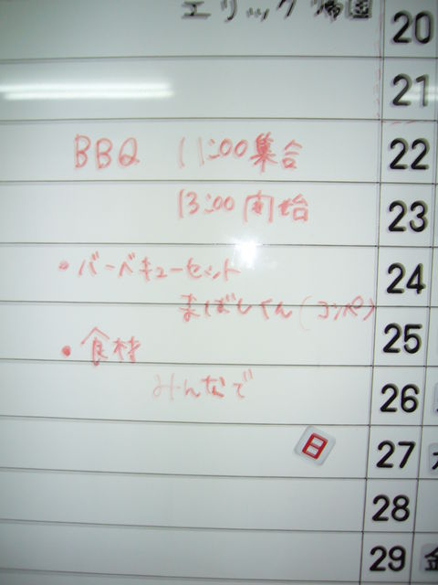 みなさんの財布を容赦なく襲うBBQを画像のスケジュールで開催しますぴかぴか(新しい) 朝が弱い人が多いですが遅刻した人は我らが紅一点が 「小指飛ばす衝撃」 らしいので皆さんご注意を・・・ウッシッシ