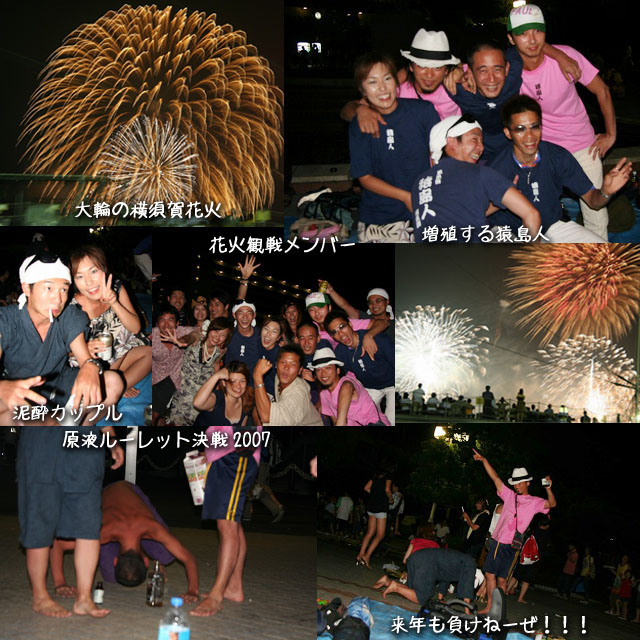 毎年恒例の横須賀花火の日に無人島猿島へ行き大騒ぎする会、今年もやります。 始発フェリーで行って最後まで遊び尽くす、それが大人。 日焼けしすぎて翌週死んでる、それが大人。 洞窟探検、磯遊び、ビーチ、坂登り、原液、冷たいビール、音楽、仲間。すべてが詰まったアツい1日を一緒にすごしてみませんか? 前日の神奈川新聞花火大会、夜のageHaでのJzTranceなどその気な人は2日間遊び尽くせます。 ■開催概要 日:2008年8月2日(土) 泥酔タイム:9:00〜16:30 (一緒に行く人は品川京急の特急乗り場に7時集合。品川7:10発久里浜行(横浜