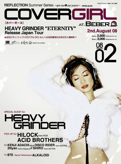 管理人様、告知失礼します。 PARTY×HOUSE×FASHIONをコンセプトに 世界のTop House Female DJをフィーチャーしたParty"COVER GIRL" 神戸開催第1弾となる8月2日(土)には 24歳の若さで、アメリカ国内をはじめ世界各地を飛び回り、 1日なんと10,000人を超えるMY SPACEのPV数など モデル並のルックスと男まさりのプレイで世界中が注目する 話題の女性DJ HEAVYGRINDERが決定! エッジの効いたHOUSE MUSICにダンサーが フロアを華やかに舞うファッショナブルなParty!!! ☆★ PARTY × HOUSE × FASHION ★☆