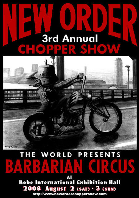 2006年 兵庫県神戸市で産声をあげた日本初の "CHOPPER ONLY"のインドアカスタムモーターサイクルショー 今年で3回目を迎える"NEW ORDER CHOPPER SHOW" 詳細は以下からチェックして下さい。 【mixiコミュニティー】 http://mixi.jp/view_community.pl?id=2341199 【公式ホームページ】 http://neworderchoppershow.com/ ■ 神戸国際展示場3号館(神戸ポートアイランド) 2008年 8月 2日(土) 12:00〜18:00 〜3日(日) 10:00〜17:00 ■ 入場料 2000円(2日) 御来場お待ちしております。