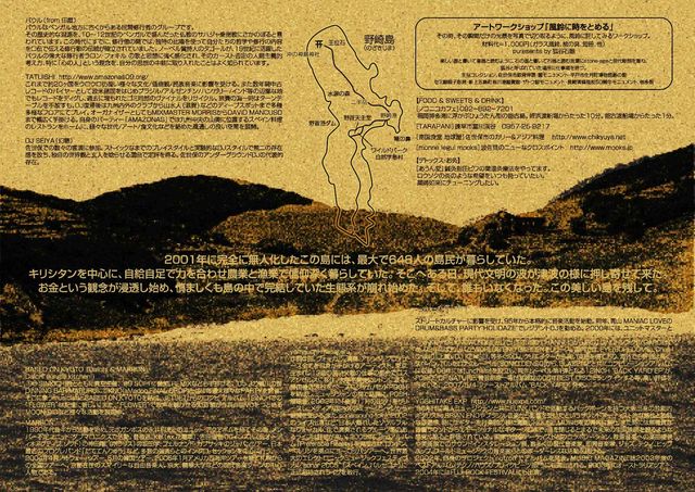 失礼しまーす。 http://mixi.jp/view_event.pl?id=31969144&comm_id=2030293 8/2、3NEWDAYの会場となる『野崎島』 は、20世紀をやっと振り返えれるようになった(そうせざるをえなくなった) 僕たちに強烈なメッセージを発する島です。 島には廃校になった小学校を利用し、自然学習塾という宿泊施設(キャンプ可)があり、素晴らしい真っ白な誰もいないビーチ、完全な形で残っている教会、1300年前に建てられた神社、その裏に鳥居の様に重なってそびえ立つ巨石。港付近には廃村となりながらも、島の鹿(小さい島だか、600匹
