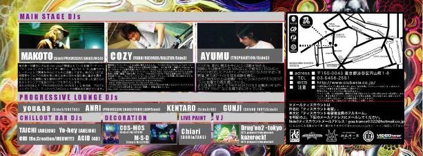 管理人様、告知させて頂きます。 -EVERY MONTH 1ST MONDAY- VARIOUS ELECTRO MUSIC PARTY Side3×PROGRESSIVE LOUNGE 2008年8月4日(第一月曜日) @club asia(渋谷) OPEN/START 23:00〜 Doors:3,500yen(1D) 【MAIL DISCOUNT】 ¥1500 or ¥2000 23時〜1時までにご入場の方は¥1500。それ以降は¥2000となります。 ※ディスカウントは「ディスカウント希望者全員のフルネーム」を明記の上、連絡してください。 エントランスにて「メールディスカウントで○○」と伝えた後にIDと本名を照合いたします、ニックネー
