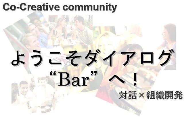 対話を通じた組織開発やファシリテーション 興味のある方へ ストーリーテリングと 共創的なコミュニケーション手法による ワークショップのご紹介です。 ■ご案内 第四回ダイアログBar------------------------------- (東京都内、8月4日(月)19時、転送歓迎) □□□―――――――――――――――――――――→ 対話と組織開発のコミュニティ『ダイアログBar』 〜対話による学びと共創の場〜 8月4日(月曜日)19:00〜21:45(渋谷) ダイアログBarとは: http://positivelearning