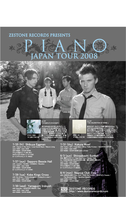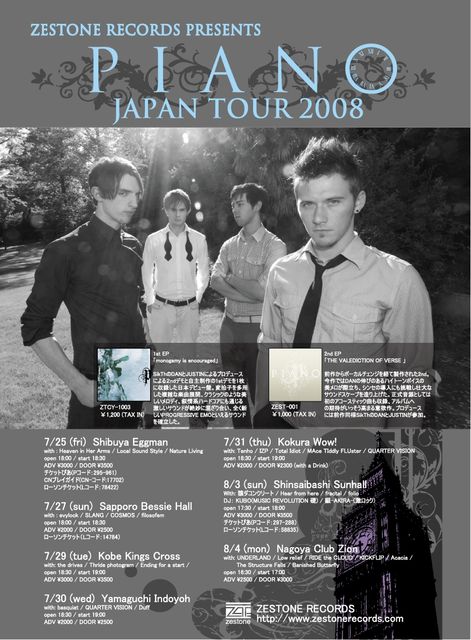 sikTh¤Î¥á¥ó¥Ð¡¼¤Ë¤è¤ë¥×¥í¥Ç¥å¡¼¥¹¡¢UKȯProgressive/Emo¥·¡¼¥ó¤ÎÀè¶î¼ÔPIANO¡£ÀèÆüȯÇ䤵¤ìÏÃÂêʨÆÃæ¤ÎThe Valediction of Verse¤ò°ú¤Ã²¼¤²¤Æ¤ÎÍèÆü¥Ä¥¢¡¼¤¬·èÄꤷ¤Þ¤·¤¿¡£°µÅÝŪ¤Ê±éÁÕÎϤϥ¸¥ã¥ó¥ë¤òÌä¤ï¤º¡¢Á´¤Æ¤Î²»³Ú¥Õ¥¡¥óɬ¸«¡ª³ÆÃÏ¤Ç¤ÎÆüËܤòÂåɽ¤¹¤ë¹ë²Ú¥á¥ó¥Ä¤È¤ÎÅöÆü¸Â¤ê¤Î¶¦ÌĤˤâÃíÌܤǤ¹¡ª