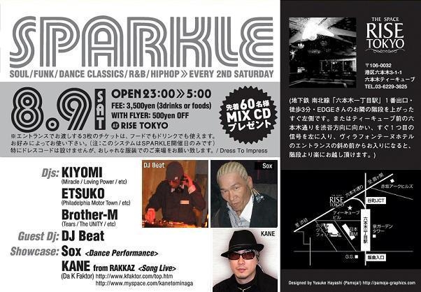 毎月第2土曜日に開催中のSPARKLE、5月から場所を移してのはや4回目の開催です 先回7月12日はゲストDJにJoint One Radio ShowやイベントThe UNITYで一緒の盟友Joey Slickを迎え、ショーケースLIVEもSOUL DIVAのSHINOBU、R&BシンガーのRYUと若手グループFLAVAの3組が出演、BDも含めて大勢のお客さまを迎えて盛り上がりました ☆SPARKLEはダンクラ、Funk、Soulから最新R&B・Hip-Hopまで、Black Music全般を楽しんで頂けるイベントです 8月のSPARKLEは8/9(土)に開催です もちろん場所はTh