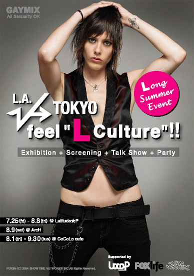 8/9(sat)『Lの世界』特別試写会&トークショーありのスペシャル1Nightイベント「LA・TOKYO feel “L Culture”!!」開催!! ★TWが提供する、キャサリン・メーニッヒのサイン抽選会あり!! LA・TOKYO feel “L Culture”!! 2008 8/9 SAT @ArcH(新宿二丁目) OPEN:21:00〜 GAYMIX(All Sexuality OK!) 3000yen(1D) 2500yen(1D with Flyer) 6月にシェーン役のキャサリン・メーニッヒが来日し、ますます盛り上がりをみせているドラマ『Lの世界』。ドラマの日本版DVD未リリースエピソードの特別試写会にはじまり、Lカルチャーのスペ