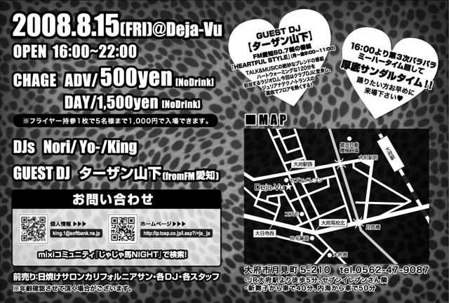 LADIES:ADV 1000YEN(1DRINK) DOOR 1500YEN(1DRINK)