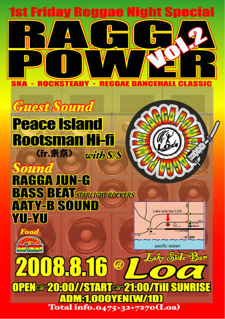 Start/21:00 Till/Sunrise ADM/1,000y(W/1D) 〜SKA〜ROCKSTEADY〜REGGAE DANCEHALL CLASSICS〜 今回は、横浜や都内で活躍中の若手SoundをGuestにお呼びし、 また、SoundSystemも入れちゃいます 〜〜〜〜〜〜〜〜〜〜〜 Guest Sound PEACE ISLAND Rootsman hi-fi with S/S (Fr.東京) Sound/Selecter Ragga Jun-G(レギュラー) BASS BEAT(Kazuya&Dai) AATY-B Sound YU-YU Food Guccimans-Jerk Chicken 関係者一同、お待ちしております。