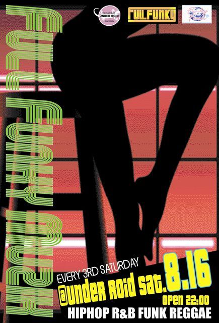 FULL FUNKY PRESENTS ---FULL FUNKY MUZIK--- 2K8.8.16(SAT) 柏@UNDER ROID OPEN 22:00〜5:00 HIPHOP.R&B.FUNK.REGGAE & ALL GOOD MUZIK... MEN:\1500/1D WOMEN:\1000/1D HIPHOP R&B Dj's MAKOTO(Neighbor) DON MITSU FUJII MICRO(Corn frake) SYGMA MIZZ(J.J.R) TONERI REGGAE MUZIK BY-- HIROMI SUPPORT BY HAIR SALON「FUNKY FRESH」 □1:00 & 2:00 Enjoy free テキ-ラ OPEN!!! □Every month 3rd Saturday! □FULL FUNKY OFFICIAL SITE http://pksp.jp/fullfunky/ □DANSYAK