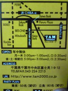 来たる8月24日(日)いよいよ二人の結婚披露宴&二次会が行われます 披露宴の案内は各自受け取ってると思いますが、 やっと二次会の場所が決定いたしました。 場所:千葉中央区富士見1-9-12 ダイニングレストランTAMトルネード 日時:24日 PM7時半スタート(約2時間半) 電話:043-224-2215 会費:男性¥7千円、女性¥6千円、小学生以下無料 出欠の確認はほとんど出てると思いますが、行ける方がいればお早めに連絡くださいね。