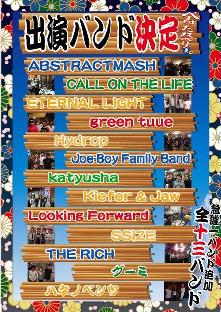 "studio penta presents - ペンタ祭り 夏'08 -"  ̄ ̄ ̄ ̄ ̄ ̄ ̄ ̄ ̄ ̄ ̄ ̄ ̄ ̄ ̄ ̄ ̄ ̄ ̄ ̄ ̄ ̄ ̄ ̄ ̄ ̄ ̄ ̄ ̄ ̄ ̄ 2008.08.24 (sun) 千葉中央公園特設野外ステージ 会場地図 * http://www.chal.jp/event/chuokouen_map/ 開演 10:30 / 終演 18:40 (出演順は当日発表) 入場無料 / 雨天決行 主催 * スタジオペンタ 出演 * ABSTRACTMASH,CALL ON THE LIFE,ETERNAL LIGHT,green tune, Hydrop,Joe-Boy Family Band,katyusha,Kiefer&Jaw, Looking Forward,THE RICH,S SIZE,グーミ,ハネノベンツ ゲスト * SHENKY GUNS, ザ・モ