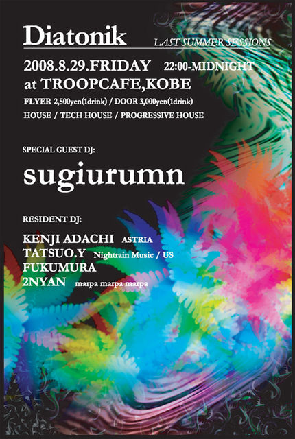 Diatonik(ディアトニック)は「100% Pure Dance Music」をコンセプトにSTARTするNew Party。ハウス/テクノ/プログレッシブなどジャンルにとらわれず今の旬のDANCE MUSICを神戸の夜に届けるべく始動。第1回目を迎える今回は、世界のトップシーンで活躍しているSUGIURUMNが登場。 世界最先端のハウスシーンと常にリンクするDJスタイルは日本中の週末を熱狂させ、世 界最高峰のクラブ「Pacha Ibiza」のミックスCDのDJに選ばれ、3年連続で毎年Pacha IbizaのMix CDを手掛けている。2008年、SUGIURUMNとして活動はじめて10周年になる。そんなSUGIURUM