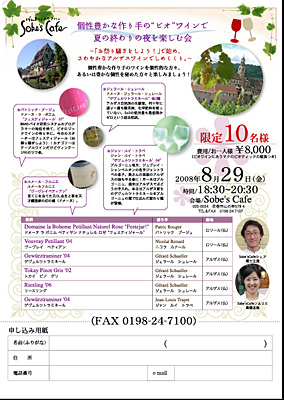 大盛況だった先月のセレブワイン会。 今月は価格を下げて 量を増やし 夏の終わりにぴったりのすっきり系ワインをセレクトしました。 人数はまたしても10名様限定。 時には 楽しく 時には しっぽりと 10名さまで楽しみます。 もちろん、オーナー畠山はデフォルトで参加。 ソムリエ志保ちゃん、福士シェフとも ワインについて、お料理について、人生について(?) 飲んで食べて語り合いましょう〜♪ 日時 8月29日(金) 18:30〜20:30 (お店の清掃後のクローズまでだったら居残りOK。笑)
