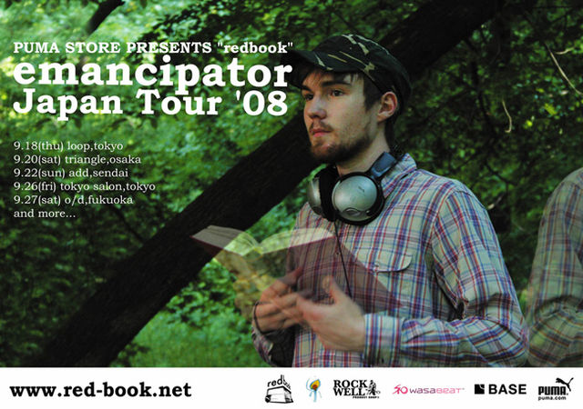 告知失礼します! 初来日です! 9/22 PUMA STORE PRESENTS “redbook”INNER VISION 2nd anniversary emancipator Japan Tour ‘08 SPECIAL GUEST LIVE:Emancipator GUEST LIVE:SOUND MARKET CREW GUEST DJ:SHIMA&ADACHI(SOUND MARKET CREW) DJ's:KATZ ELTONG HAYATO yarimizu OPEN21:00 ADV 2,500YEN/1D DOOR 3,000YEN/1D INFORMATION CLUB ADD:022-263-1185 webmaster@clubadd.com http://www.clubadd.com/ http://www.clubadd.com/m red-bookオフィシャルweb http://www.red-book.net/ ■Emanc