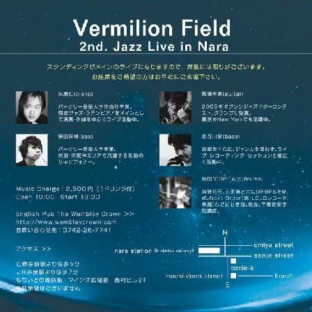 超絶技巧集団Vermilion Field(バーミリオン・フィールド)を迎えての お月見ライブ@The Wembley Crownです! スタンダードジャズとは一味違った、クールでスリリングな アップテンポジャズをお楽しみ下さい! また当日、会場は燈火器の幻想的な明かりに包まれます。 (寧屋 http://www.neiya.com/) お月見ライブ with 燈火器 Vermilion Field(コンテンポラリージャズ) 朱恵仁 piano (バークリー音楽大学卒) 栗田洋輔 sax (バークリー音楽大学卒) 馬場孝喜 guitar (05年ギブソンジャズギターコンテスト・グラ