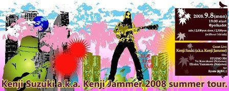 管理人様告知失礼いたします。 いよいよやってまいりましたkenji jammer 2008 summer tour!! 今回は月曜日に豪華ゲストを迎えます! ロンドンからkenji jammer!! 大阪からはSTUDIO 504 京都からは NABOWAのお二人!!Yu Kawakami (from Nabowa) Hiraku Yamamoto (from Nabowa) 素晴らしいJAMを体感できること間違いありません!! 夏を締めくくる最高のユルい夜にしましょう!! 前売りチケット販売中です。お早めにご連絡ください!! ※お問い合わせは cafe polkadot まで 〒634-0063