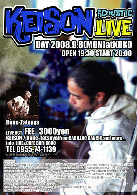 海を愛し、サーフボードとギターを片手に全国を漂流するKEISONのLIVEにぜひ遊びに来てください!