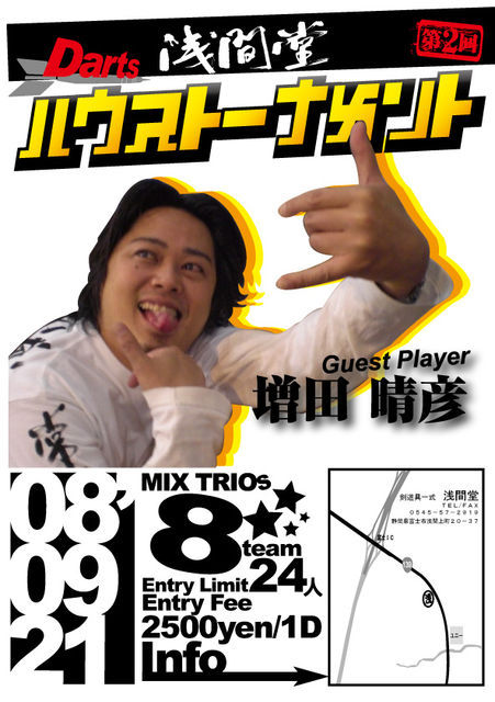 皆さん、お疲れ様です。 7.26の盛り上がりは凄かったですね!! 参加されたプレイヤーの方、本当にありがとうございました!! 只一つ・・・あのハウス、土曜日の開催だったんですよ・・・ で・・・・「何で日曜日じゃないんだ!!」という方々が 実は相当いらっしゃったんですね。 自分、2ndは10月の中旬くらいに企画しようと思っていたんですが 静岡は結構ビッグトーナメントにカブっちゃうんですって。 で・・・・9.21!! 日曜日にしか体が空かないアノ人やアノ人・・
