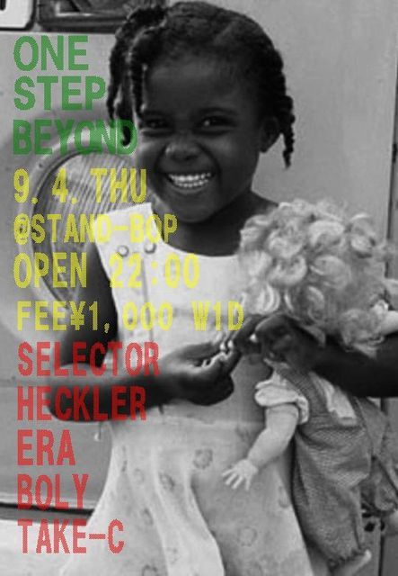 告知失礼いたします。 明日、毎月不定期開催しております 「ONE STEP BEYOND」が開催されます。 毎回、様々なREGGAEシーンからゲストをお呼びして開催致しておりますが、 今回は、様々な想いと共にレギュラー陣で頑張りたいと思っています。 残念ながら、ERA a.k.a.DJ HEATは、参加出来ませんが、 BOLY、TAKE-C、HECKLERの3人で ALL JAMAICAN SOUNDをお届け致します。 なかなか気持ちがDANCEから離れがちになっているとは思いますが、 「ONE STEP BEYOND,ONE STEP FORWARD」の精神で前に進んで行くことも必要だとも思いますので