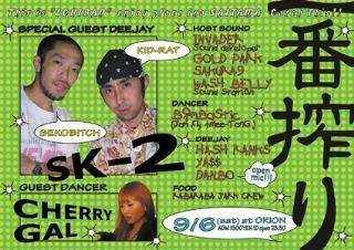2008 9/6 <SAT> 『一番搾り』 ◆GUEST DEEJAY◆ SK-2 (SEKOBITCH&KID-RAT) ◆GUEST DANCER◆ CHERRY GAL ◆DEEJAY◆ HASH RANKS YA$$ DANBO NIGIRIKID etc… VIBES OPEN MIC!! ◆DANCER◆ B♀mBastic ◆HOST SOUND◆ WASH BELLY INVADER SAKURA 9 GOLD PARK ◆FOOD◆ RABARABA JERK CREW 11:30pm-5:00am ADM/1500YEN 1D 今週末です。 皆様宜しくお願い致します。