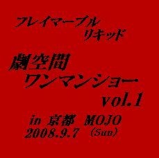 フレイマーブルリキッド、ワンマンライブを行います!! 会場は京都烏丸mojoにて!! 皆様のご来場心よりお待ちしております 会場 京都mojo 開催日時 2008.9.7 open 19:30 / start 20:00 料金 adv ¥2000 / door ¥2300