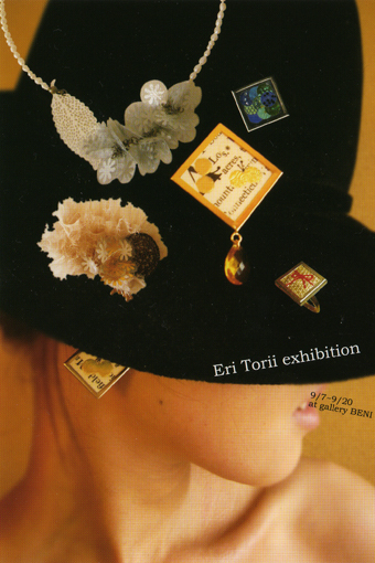 ・・・・・・・・・・・・・・・・・・・・・・・・・・・・・・・・・・・・・・・・・ ‘08 autumn/winter Eri Torii Accessory Exhibition 展示販売会(一部予約有) at gallery BENI 9/7(sun)~9/20(sat) open / 12:00~19:00 closed / monday はじめましてアクセサリーデザイナーのToriiと申します。 ブーケシリーズ、コラージュ、ドロップのシリーズと、人と人のつながりをコンセプトにしたシリーズも展示します。 DMをご希望の方は発送させていただきますので、下記までご連絡ください。 詳しくはコチラへ