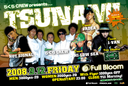 らくらCREW主催のTSUNAMI第2弾好評につき開催です!