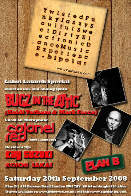 ソウル・ファンク・ジャズ・アフロビート・ラテンをベースにしたハウス/ブロークンビーツの次世代ダンスミュージックを展開するパーティ、b i p o l a r 。明日はBrixtonのPlan Bで開催!