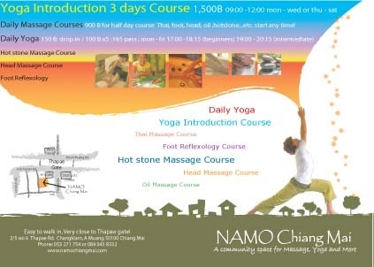 こんにちは。NAMOチェンマイより合宿のお知らせです! 日時:9月21日(日)〜24日(水)/全3泊4日授業時間20時間 場所:パイ(チェンマイ郊外です。NAMOに集合、ミニバスで移動します。) 対象:タイマッサージセラピスト(上級/アドバンス) 受講料15,000バーツ(宿泊、朝・昼食込) 定員:8名 普段おなじみのロイクロで講師をしつつも、ピシェットやバーンニットに足を運び、タイ式マッサージの研究を日々精進している北村先生がなんと、その日々の結晶を集結させ、NAMOで集中講座を行ってくれます!!ですから今回は張り切