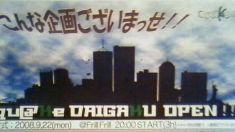 qu@Ke大学第一期生の入学式を開催したいと思います ・・という名の飲み会ですが ☆qu@Ke大学入学式☆ 場所→FrillFrill 時間→20時〜 予算→一応\3500円程度で考えてます 入学式参加者にはqu@Ke大学グッズ進呈 みんなワイワイ遊ぼーじぇい