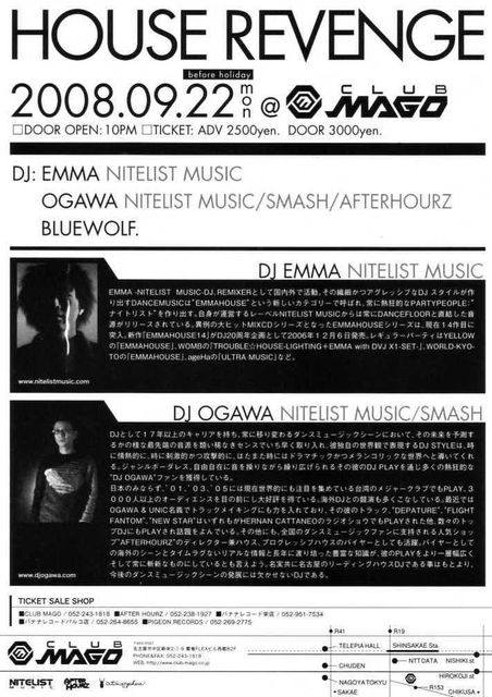OPEN&START 21:00 前売り¥2,500(Drink別¥500)