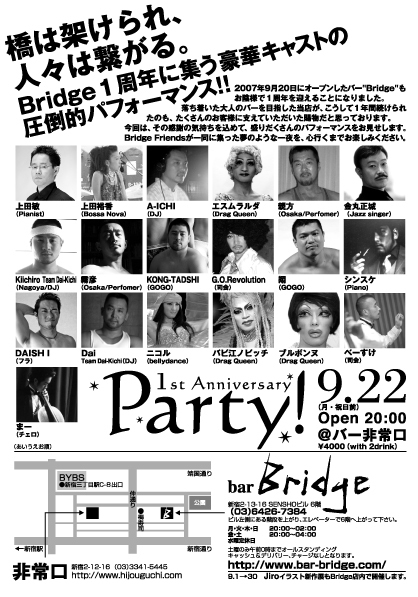 fee: 3,500yen w.f. 500yenoff/ adv. 2,500yen