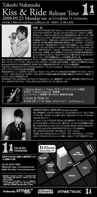 「Dance Music × Pops」 中塚武 New Alibum"Kiss&Ride"のリリースパーティー in OSAKA!!
