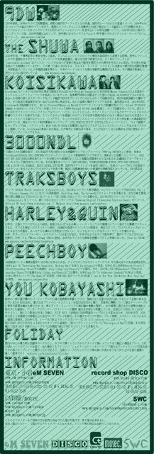 Guest Djに大沢伸一とのB2Bユニット「OFF THE ROCKER 」や、bonjour recordsのメインチーフバイヤーとして活躍中の MASATOSHI UEMURA氏(BONJOUR RECORDS)が登場!!最高の一夜を演出してくれるだろう !!