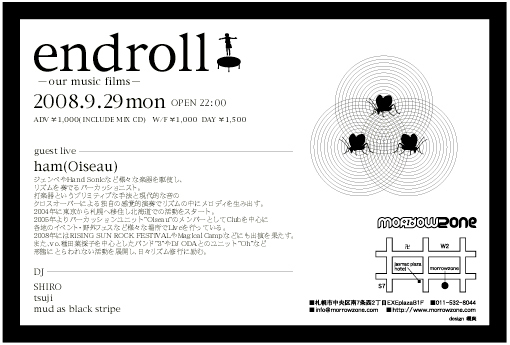 guest live// ham(Oiseau) ジェンベやHand Sonicなど様々な楽器を駆使し、リズムを奏でるパーカッショニスト。打楽器というプリミティブな手法と現代的な音のクロスオーバーによる独 自の感覚的演奏でリズムの中にメロディを生み出す。 2004年に東京から札幌へ移住し北海道での活動をスタート。 2005年よりパーカッションユニット"Oiseau"のメンバーとしてClubを中心に各地のイベント・野外フェスなど様々な場所でLiveを行っている。 2008年にはRISING SUN ROCK FESTIVALやMagical Campなどにも出演を果たす。 また、vo.種田菜採子を