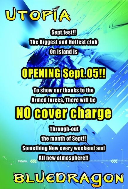 今日は沖縄市のクラブユートピアの情報です! 今月いっぱい(9月中) No! カバーチャージです 是非 お立ち寄りください