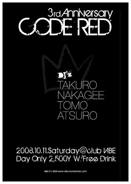 毎月第2土曜日に club VIBE で行ってる "CODE RED" が10月で3周年を迎えます!!