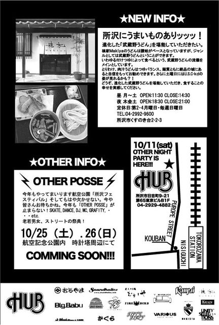 お待たせしました 次回は秋、10月!! NIGHT&POSSEが重なる日。 織り姫と彦星は曇ったら会えないけど。 NIGHT&POSSEは、どんな天気でも会えます。 去年の台風でも開催したくらいなんで! 皆様ヨロシクです! フライヤー・デザインは 今回、夏期休暇のMN2(http://mixi.jp/show_friend.pl?id=447046) <休暇を取ったのはPCでしたが>に変わり 同じくUNITY SELECTION (http://www11.plala.or.jp/unityselections/fr.htm) ケダモノこと 『K.D』です! いやーお疲れ様です!ありがとう!!!! ★OTHE
