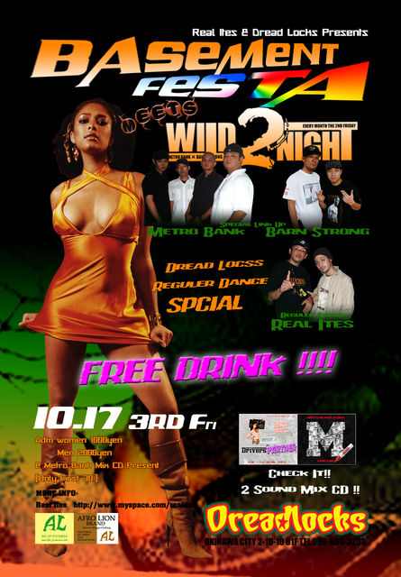 今月のBasement Festaは、Dread LocksのReguler DanceのSpecialということで、第二金曜日より、Wild 2 Nightと合同で行います