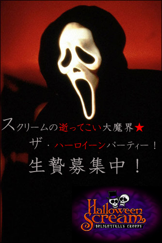 スクリームの逝ってこい大魔界★ ザ・ハーロイーンパーティー! in Nagoya 沢山のご応募ありがとうございます。 このイベントはキャンセル待ち含め募集定員を超えてしまいました。 また似たようなイベントが何処かで行われると思いますのでその時をお待ち下さいませ! 1.時間 2008年10月25日(土) 開場 18時 開演 19時 そのまま2次会あり 2.場所 名古屋市内某所 (地下鉄駅すぐ) 3.会費 会費1800円+1ドリンクチケット500円 飲食別 4.内容 「スクリームの人」のニコニコ投稿動画を踏襲した宴会芸を